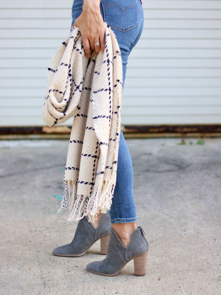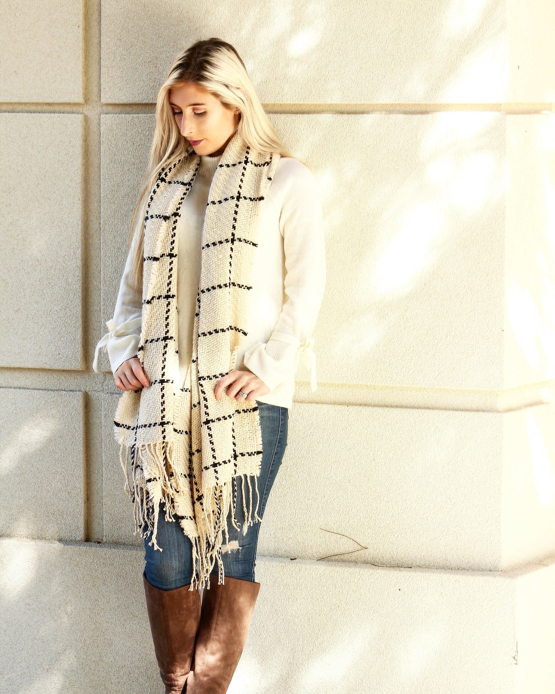 Stay cozy in cool weather with this scarf in Beige. This oblong scarf is sure to make a statement, while keeping you warm and stylish. The cable knit detail adds a modern touch to any fall wardrobe for an effortlessly chic look.
