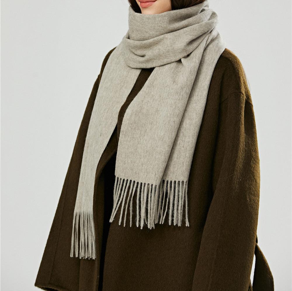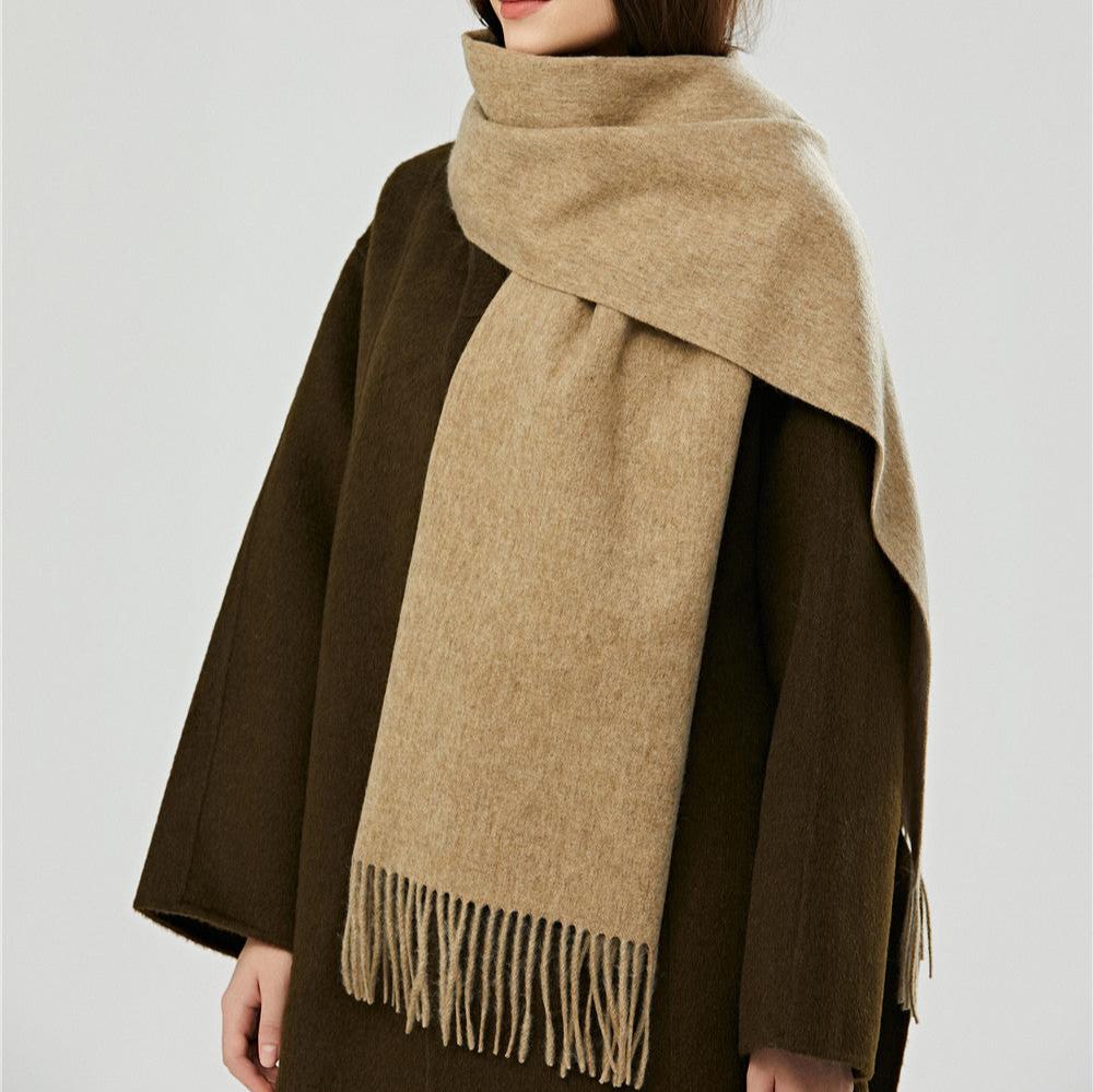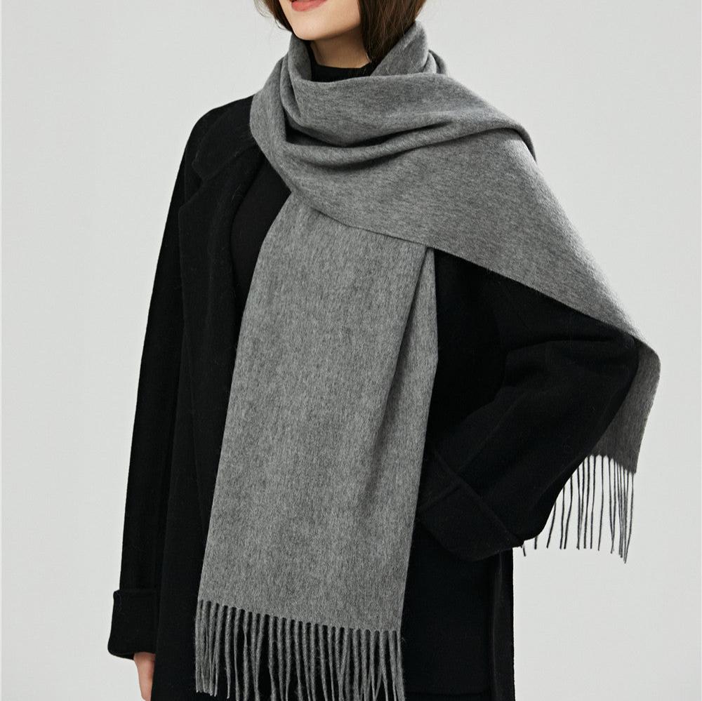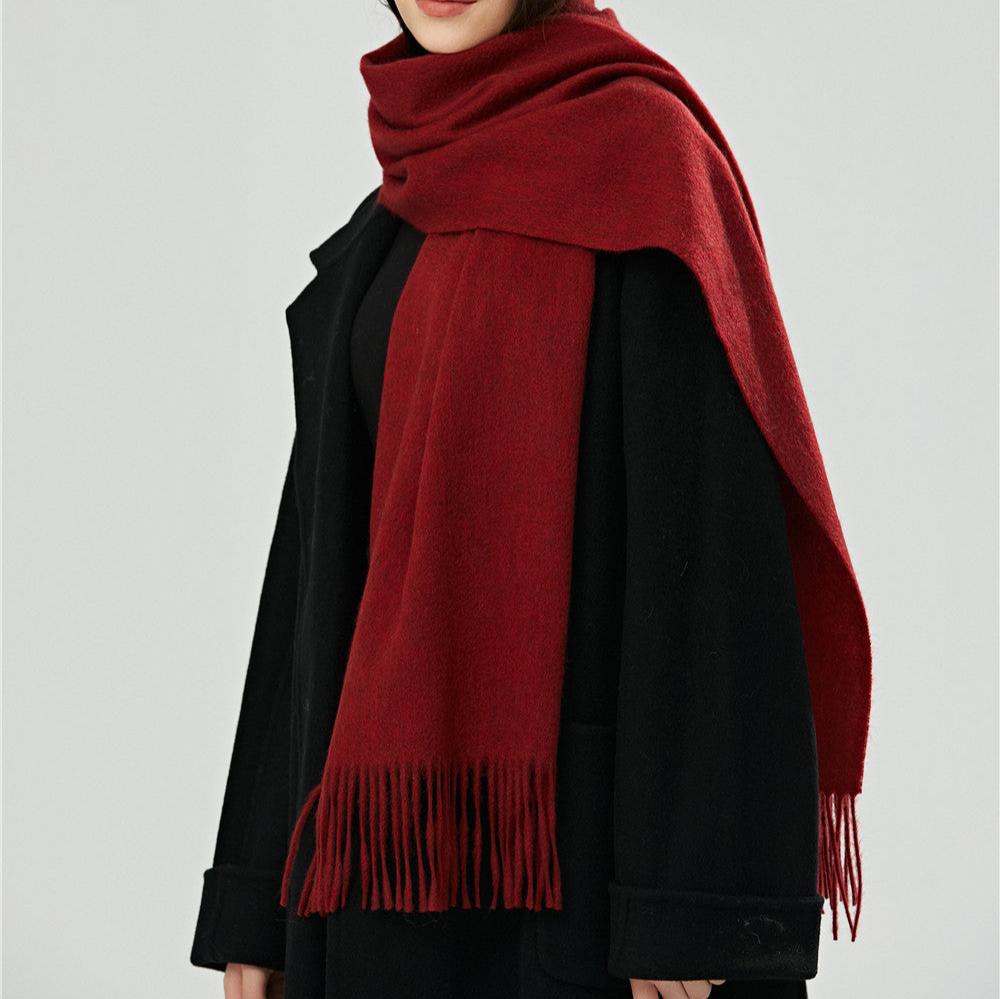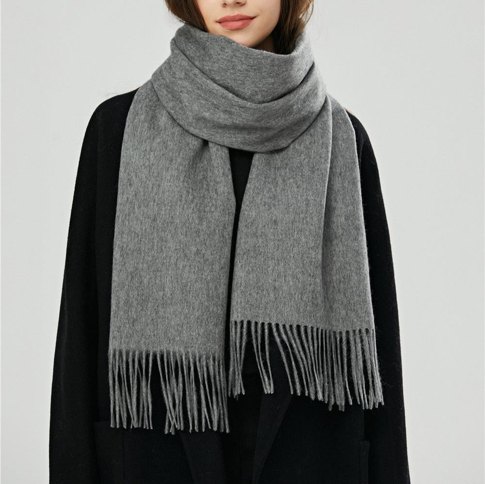 The Wool Scarf for Women adds warmth and style to any outfit. Made with high-quality wool, this solid color shawl features elegant tassels for a touch of sophistication. Stay cozy and fashionable with this must-have accessory.