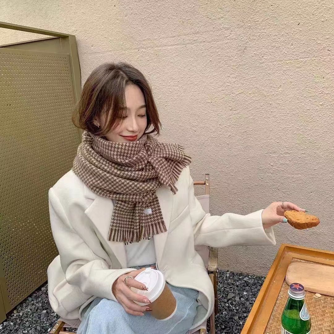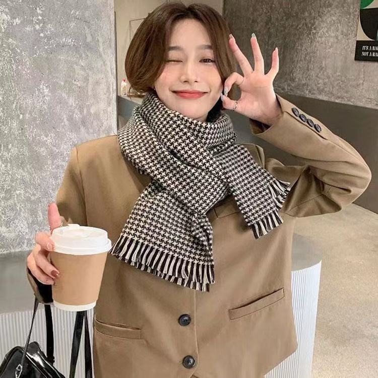 Scarf for Women Autumn Winter Houndstooth Warm Shawl
