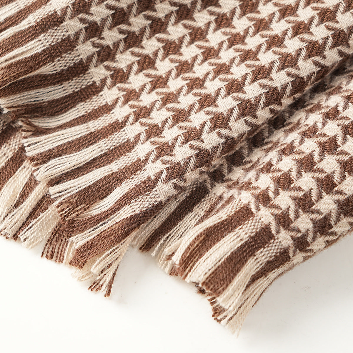 Stay cozy and stylish this season with our Scarf for Women. Designed for Autumn and Winter, our houndstooth print shawl is perfect for adding a touch of warmth and sophistication to any outfit. Made with high-quality materials, this scarf guarantees comfort and durability. Expertly crafted for your seasonal needs.