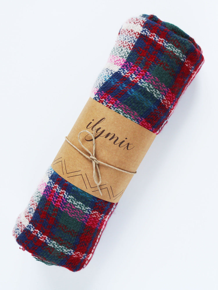 スタイリッシュなピンクのチェック柄ブランケットスカーフ