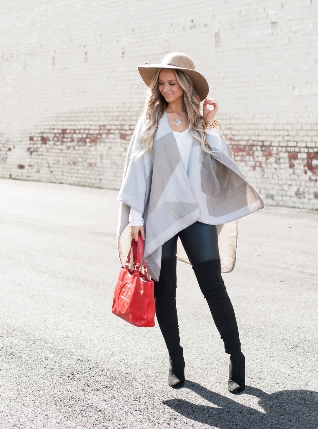Este poncho geométrico feminino é o acessório perfeito para o seu look de outono. A capa estilosa de outono oferece um estilo de rua único para o clima mais frio. Mantenha seu visual moderno e na moda com esta peça versátil.